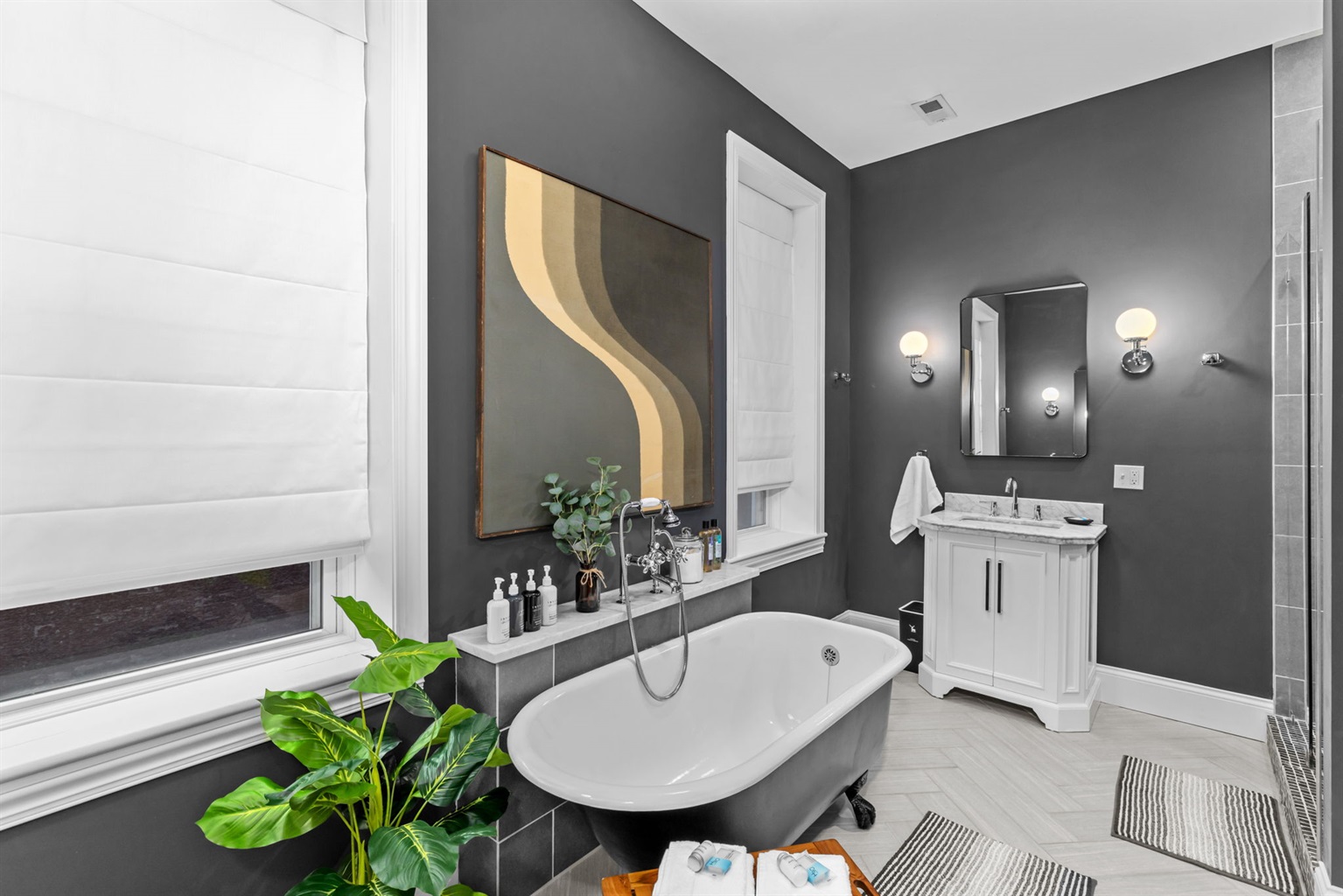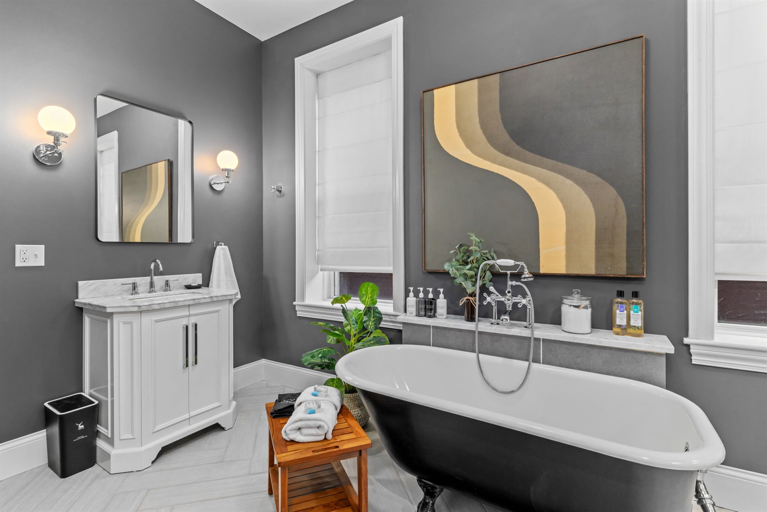Soak your cares away in the large clawfoot tub! Bath salts provided as well as relaxing spa body wash, shampoo, and conditioner.