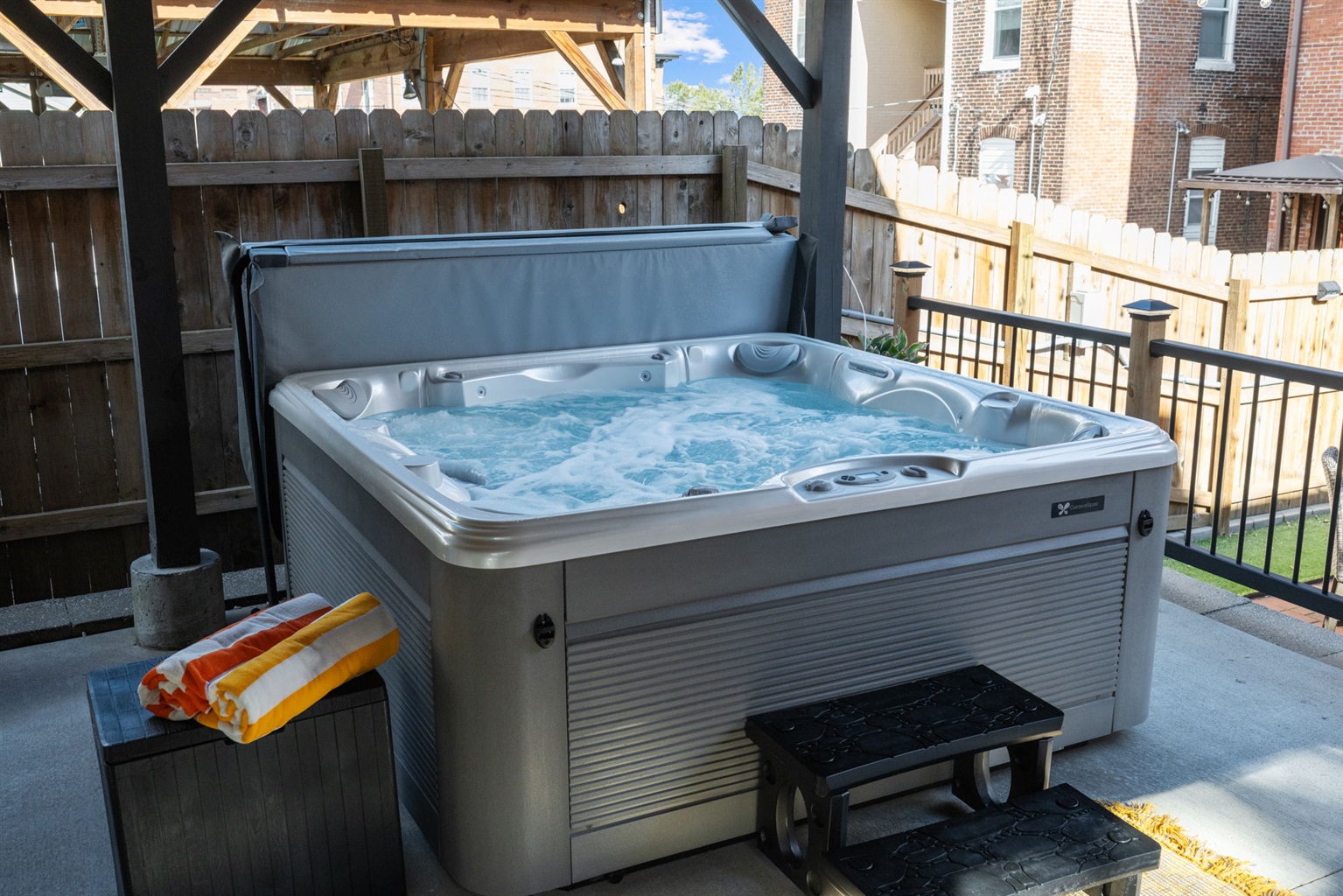 Separate beach towels provided to help you enjoy a relaxing soak in the hot tub.