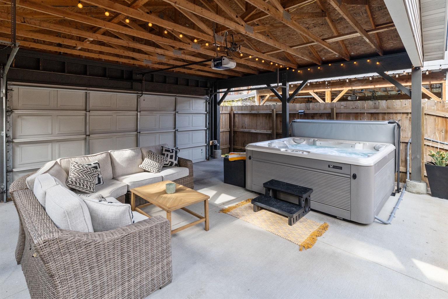 Spread your relaxation and socialization to the outdoor living room and 6-seater hot tub!