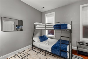 Bedroom two is equipped with a Full XL over Queen bunk bed. Note that while these beds can accommodate more, the max occupancy for this property is 6 people. The bunks add more options when traveling with friends or siblings!
